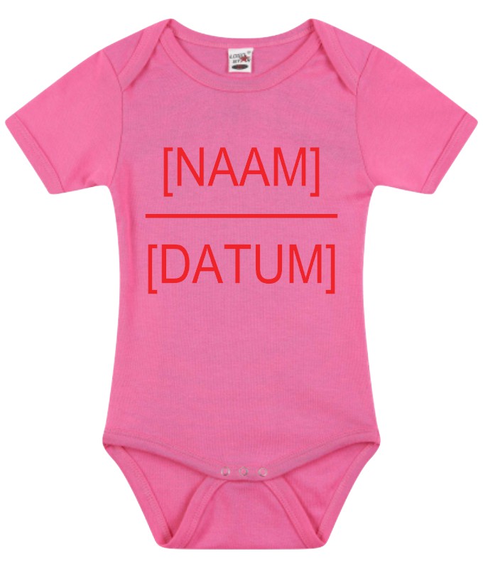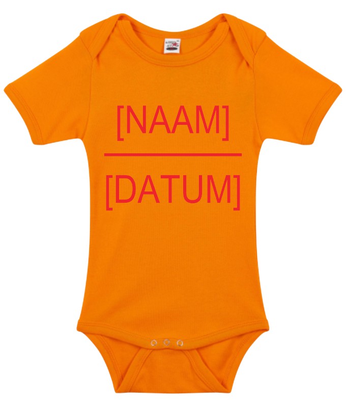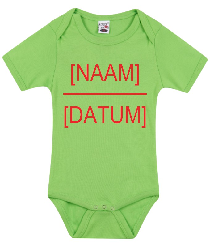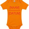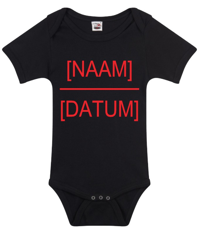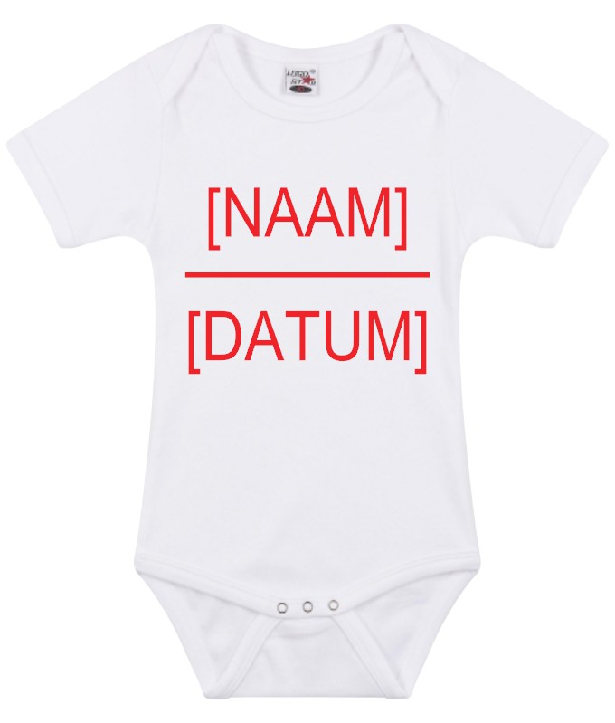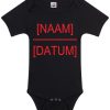 Geef bij je bestelling aan welke naam en datum je op de romper wil hebben.